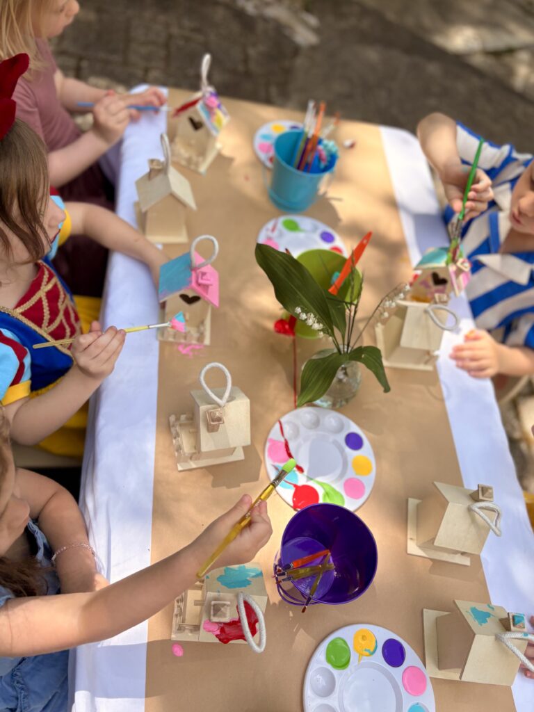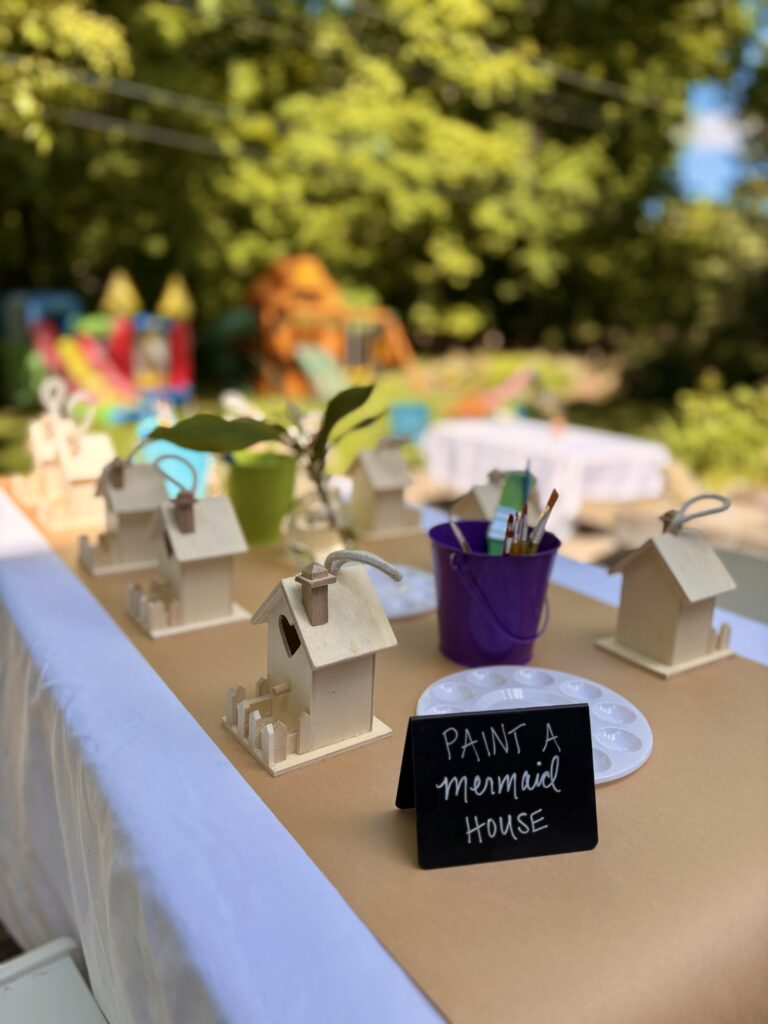 Our next craft was “Paint a mermaid house” with these mini wooden birdhouses and paint palettes