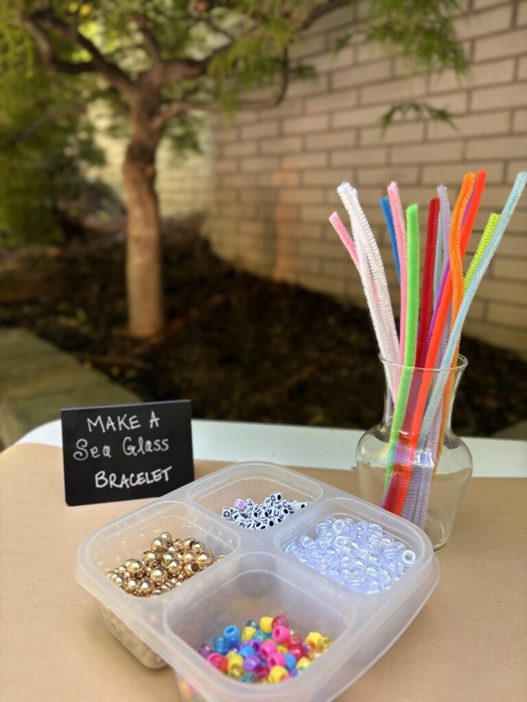 We also had a “Make a sea glass bracelet” with colorful pipe cleaners and beads
